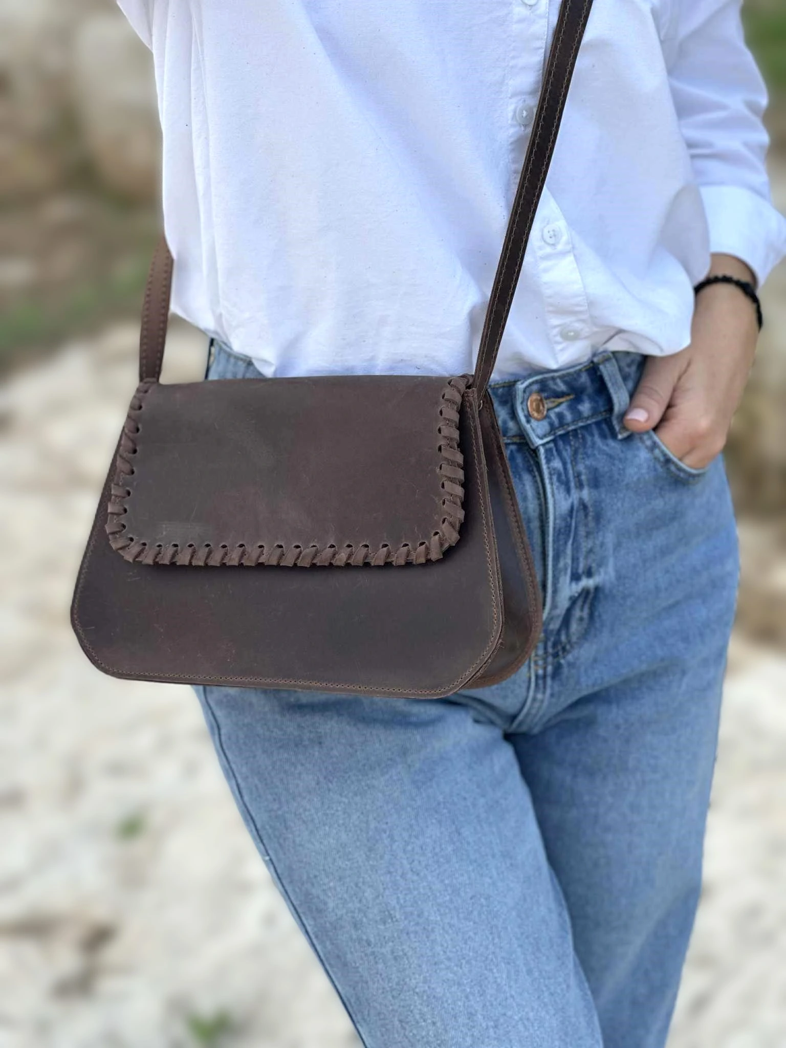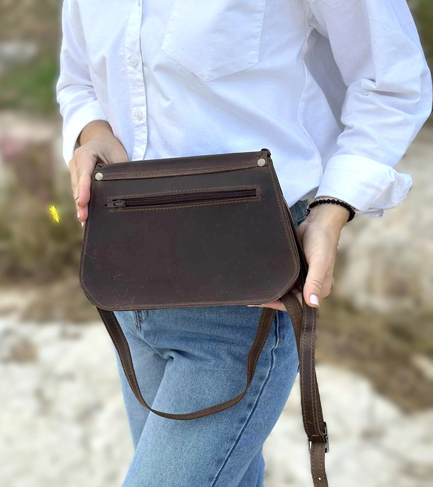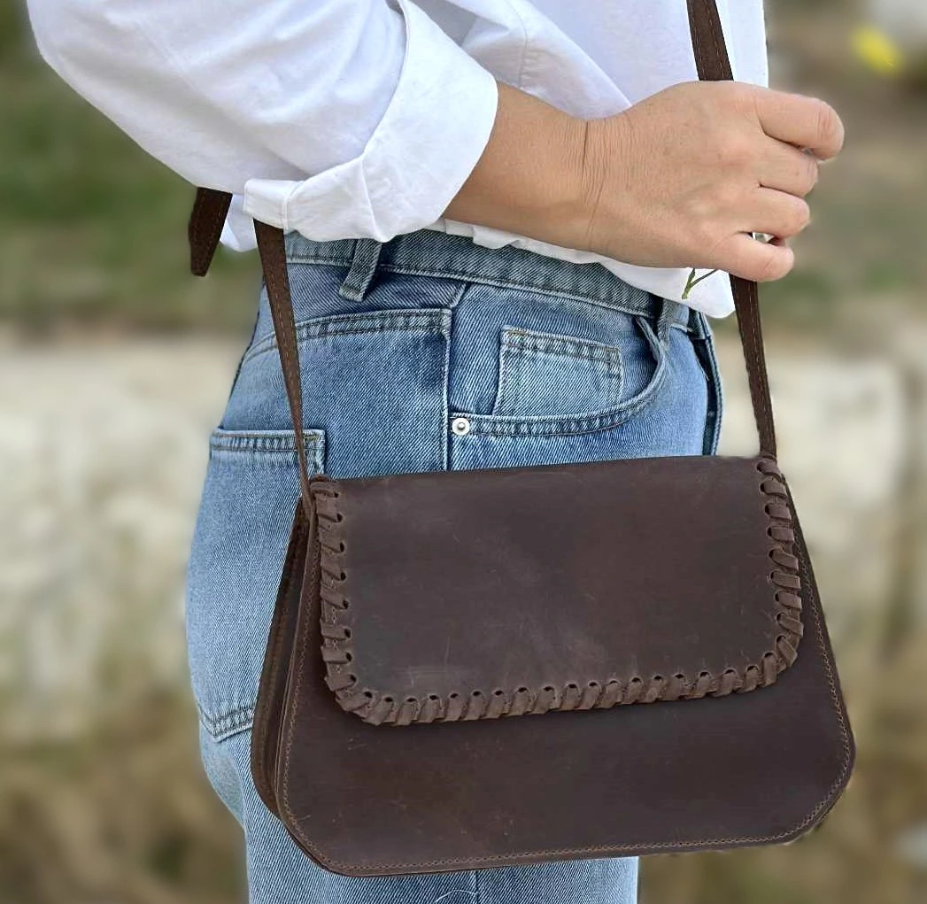 Αυτή η χειροποίητη δερμάτινη τσάντα έχει: